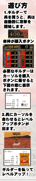画面中央下にあるギルダー(お金)でアーチャー(弓兵)やエンチャンター(魔法使い)を購入出来ます。